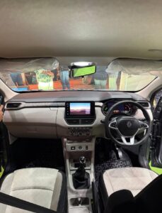 इंटीरियर को देखा जाये तो कहीं न कहीं आपको पहले वाली ट्राइबर की ही याद दिलाता रहेगा। वहीं इसकी स्टीयरिंग देखे तो वह पहले कुछ और ज्यादा आकर्षित बना दी है क्यूंकि इसमें नया लोगो आगया है। यह भी वजह हो सकती है। इंस्ट्रूमेंट क्लस्टर भी पहले से ज्यादा आकर्षित हो चूका है। इंफोटेनमेंट 8 इंच का मिलता है रेनो ट्राइबर में। AC के कंट्रोल लगभग वैसे ही है पहले जैसे साथ ही साथ ऑटो डिमिंग IRVM भी देखने को मिलता है। सीटिंग में कुछ छोटे छोटे बदलाव आएं है नयी अफोलिस्टरी के साथ आपको सीट देखने को मिलेंगी जो की आराम दायक भी है।