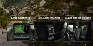 महिन्द्रा थार के अंदरूनी बदलाव की बात की जाये तो इस बार महिन्द्रा ने महिन्द्रा थार को अंदर से बिलकुल ही बदल दिया है जैसे कि बिलकुल ब्लैक थीम सीटिंग और नई इंफोटेनमेंट सिस्टम 10 . 25 इंच के साथ और पीछे जिन लोगों को AC की हवा नहीं मिल पाती थी उनके लिए रियर AC वेंट इसी के साथ साथ सबसे मुख्य और महत्वपूर्ण चीज फ्यूल लिड जो कि बहार आकर खोलना पड़ता था इस बार महिन्द्रा ने अंदर से ही एक बटन दे दिया है जिससे कि आप गाड़ी में बैठे बैठे अपना फ्यूल भरवा सकते हैं। इसी के साथ साथ महिन्द्रा ने महिन्द्रा थार में नई स्टीयरिंग व्हील दे दिया है जो कि पहले से काफी ज्यादा अच्छा लग रहा है।